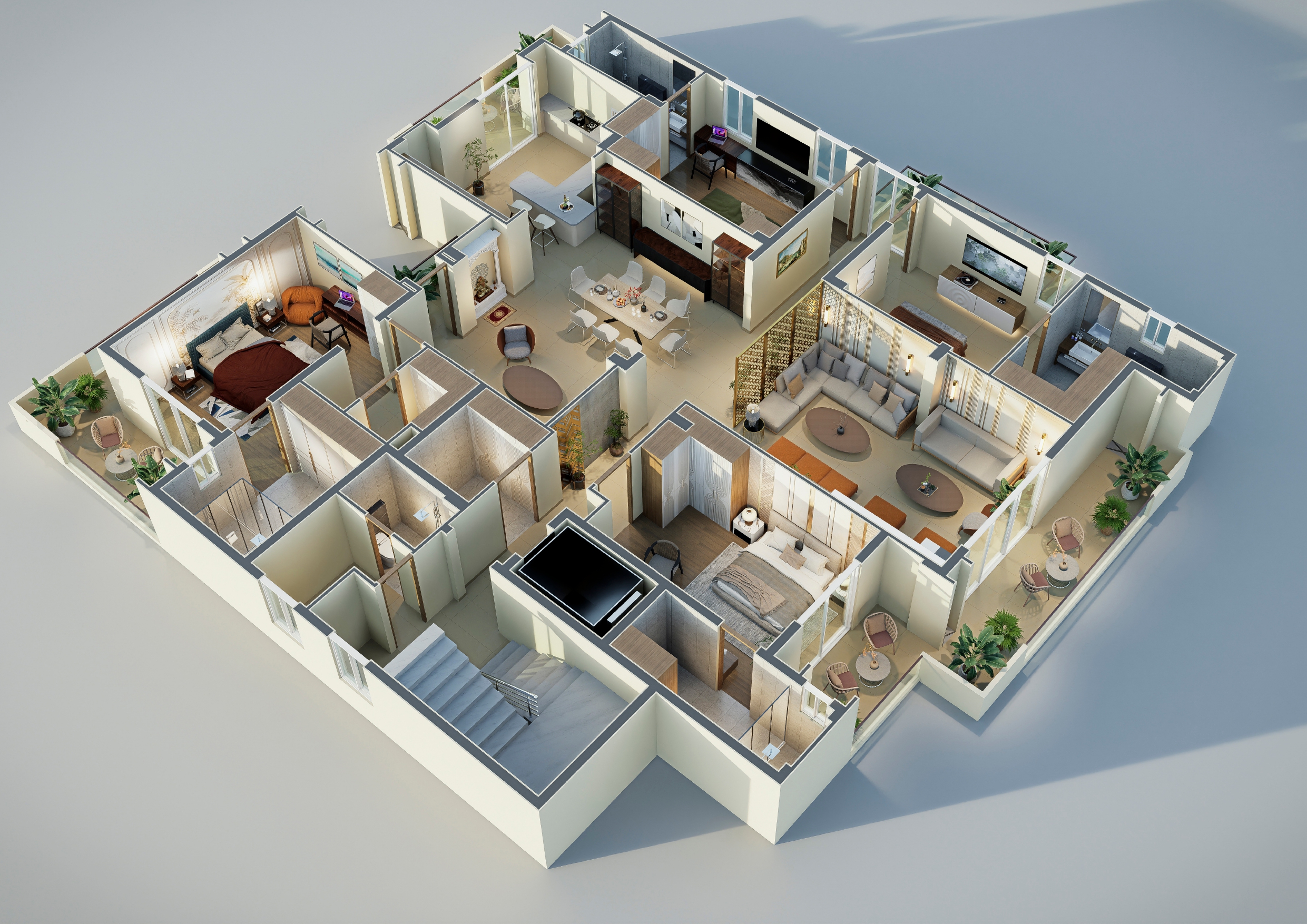 Each expansive 5150 sq. ft. residence is meticulously crafted with a sophisticated 4 BHK layout, offering a seamless blend of grandeur, comfort, and modern living.